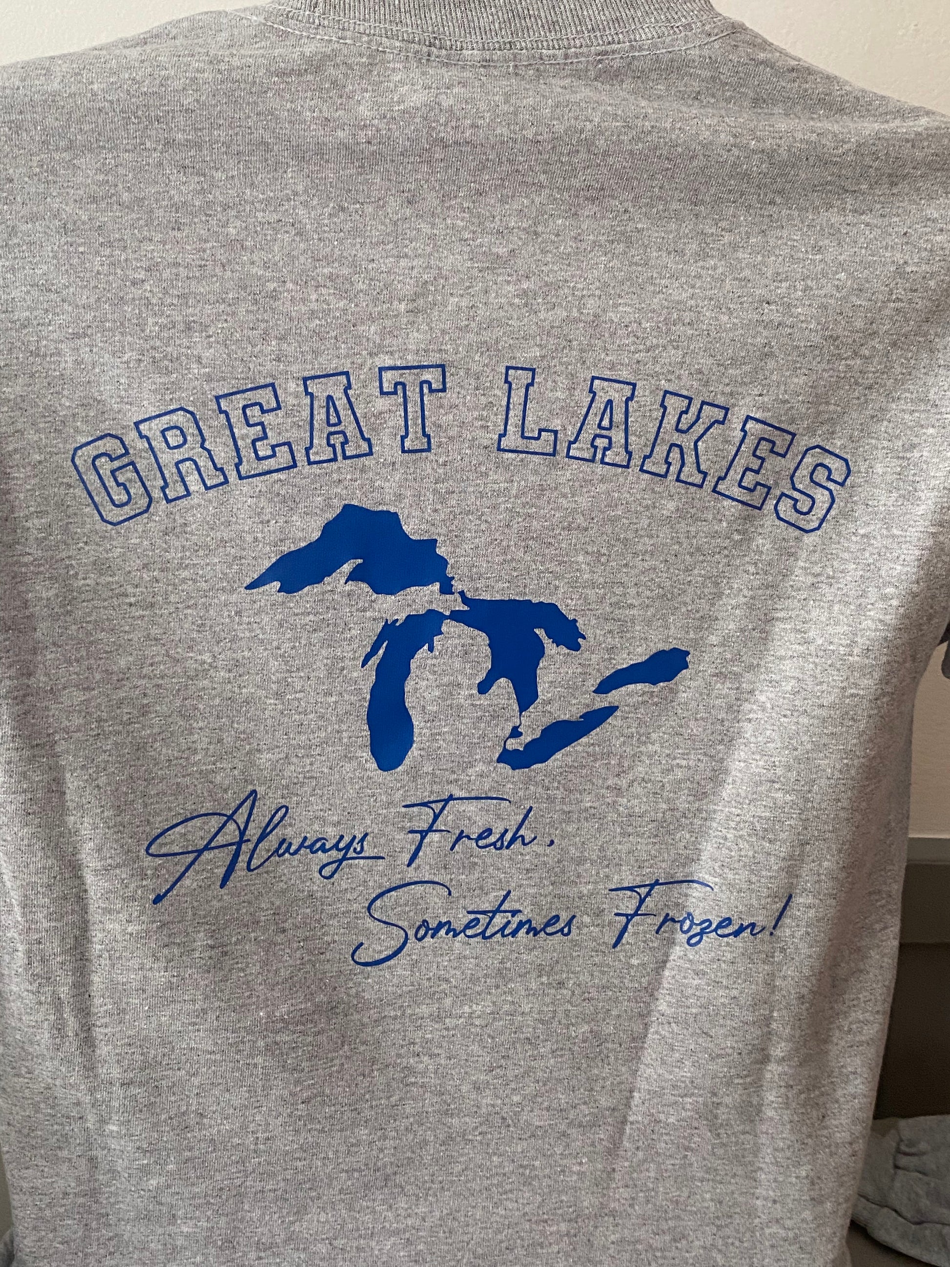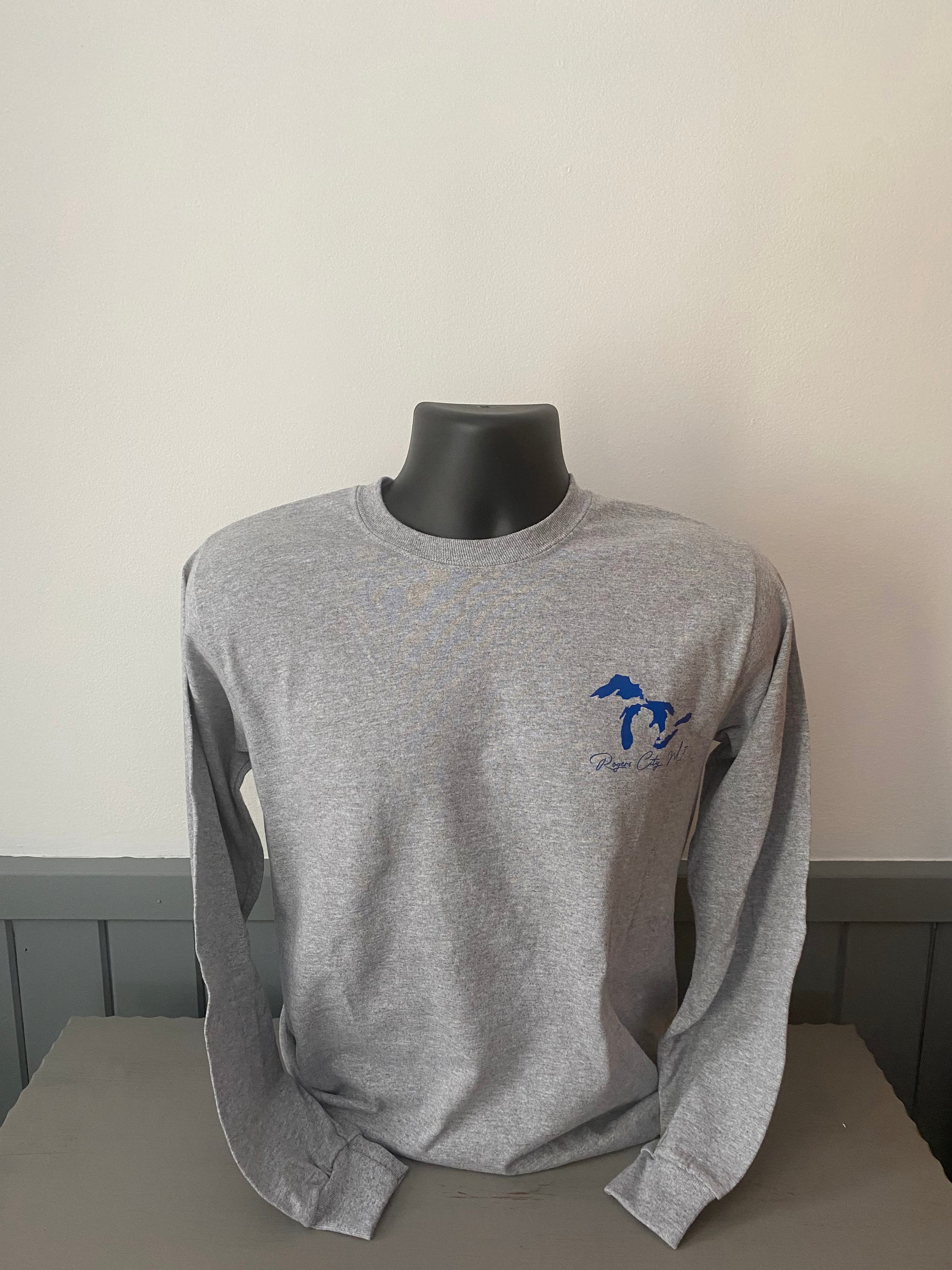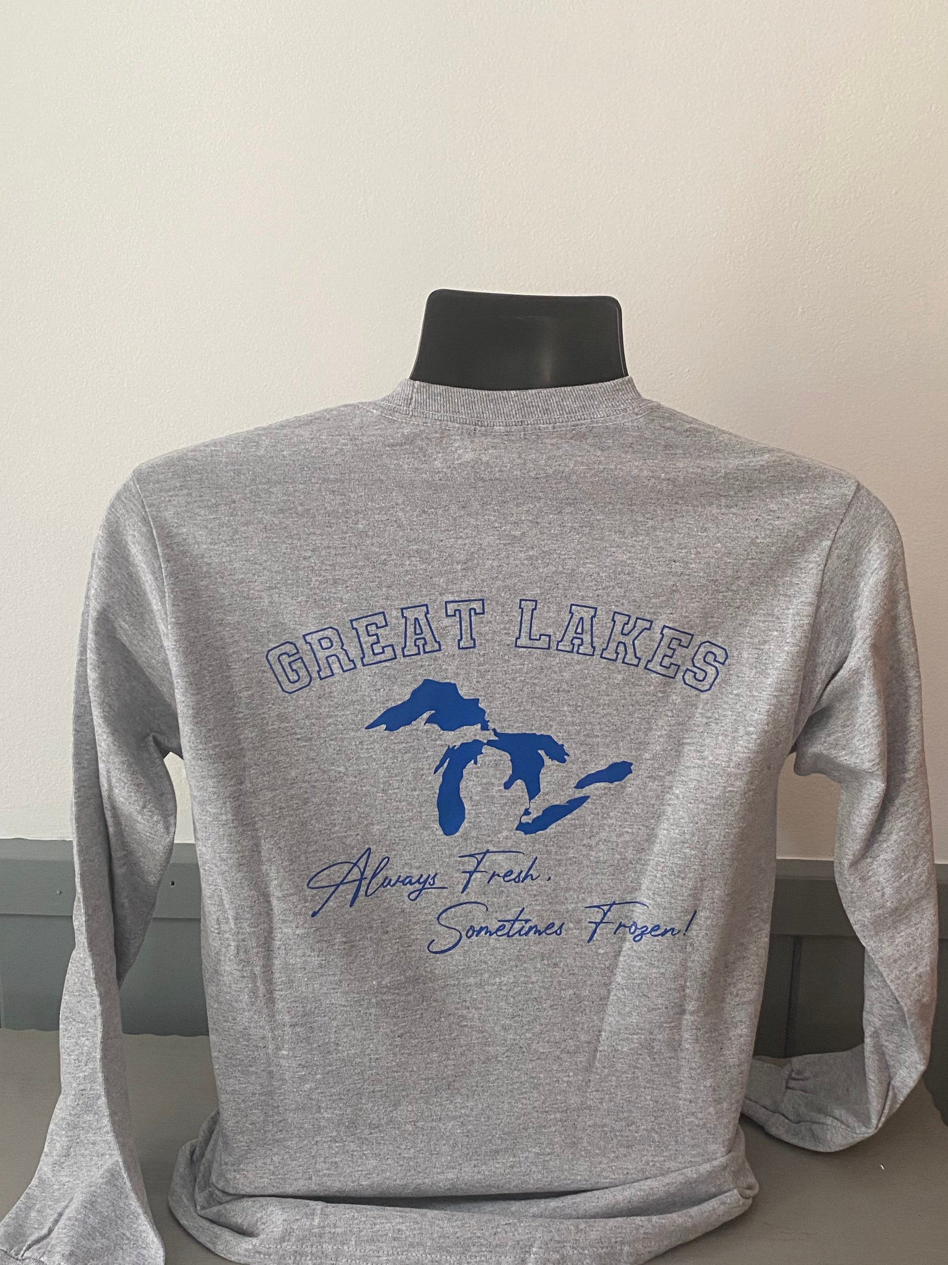 Grey cotton blend long sleeve t-shirt featuring our popular Always Fresh design in Royal Blue vinyl.