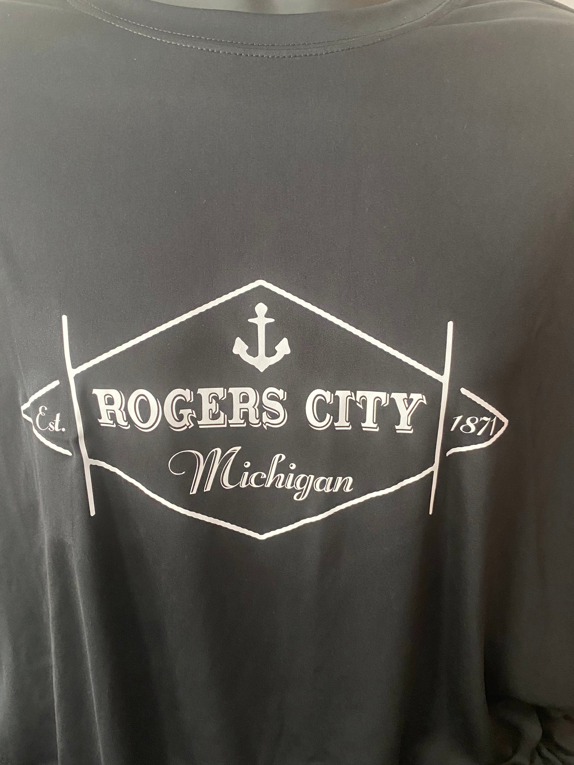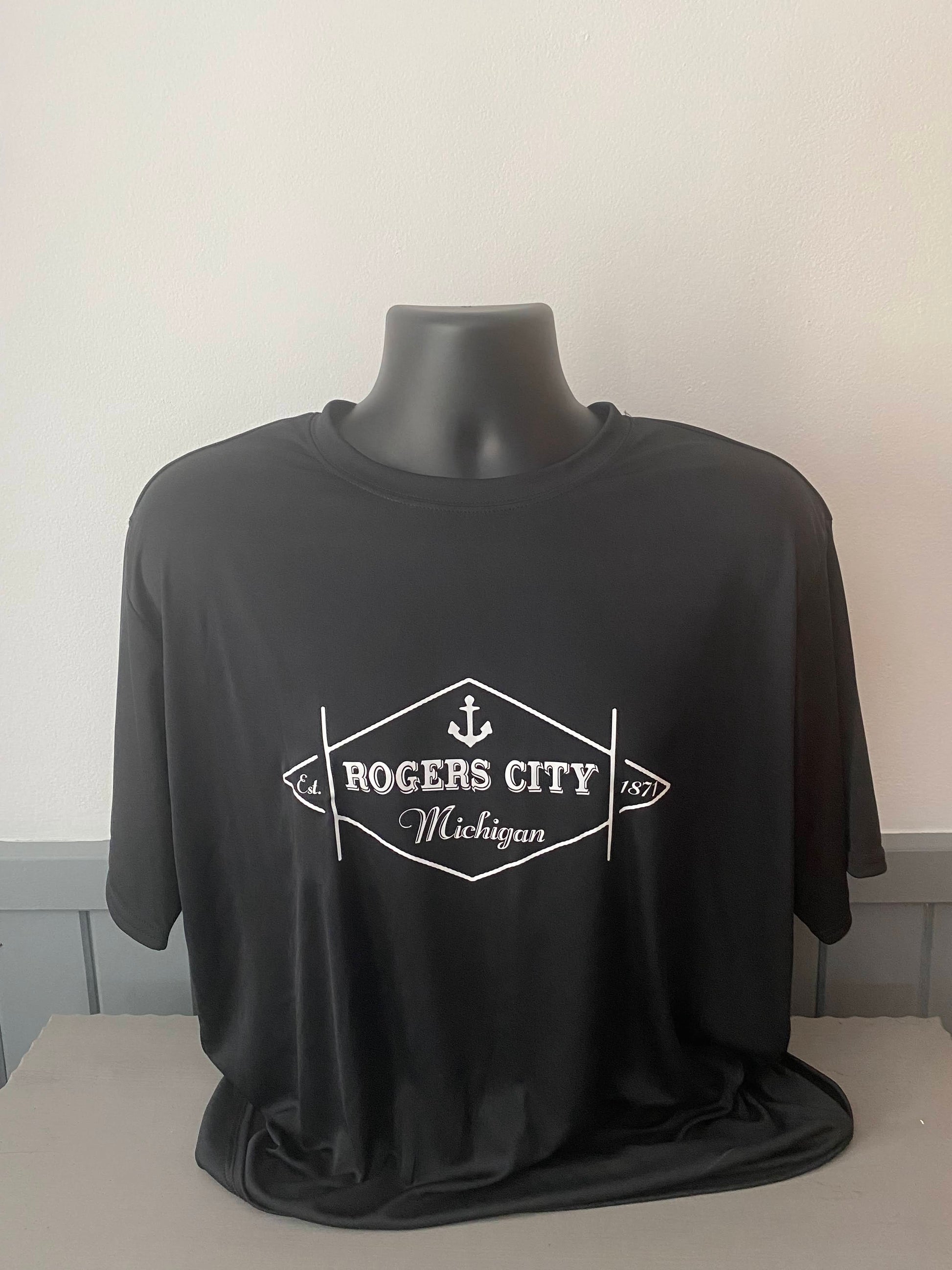 Gildan Brand Performance polyester t-shirt with our Rogers City Diamond design in white vinyl on the front.