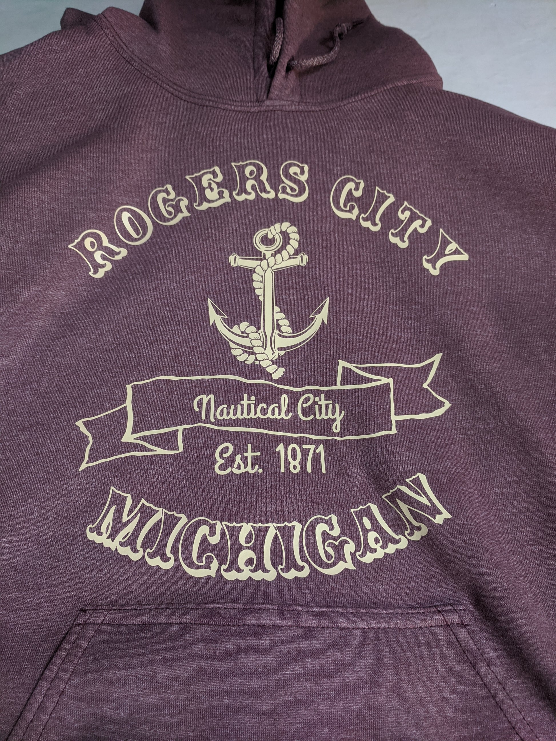 Heather Maroon cotton blend hoodie with a cream vinyl design.