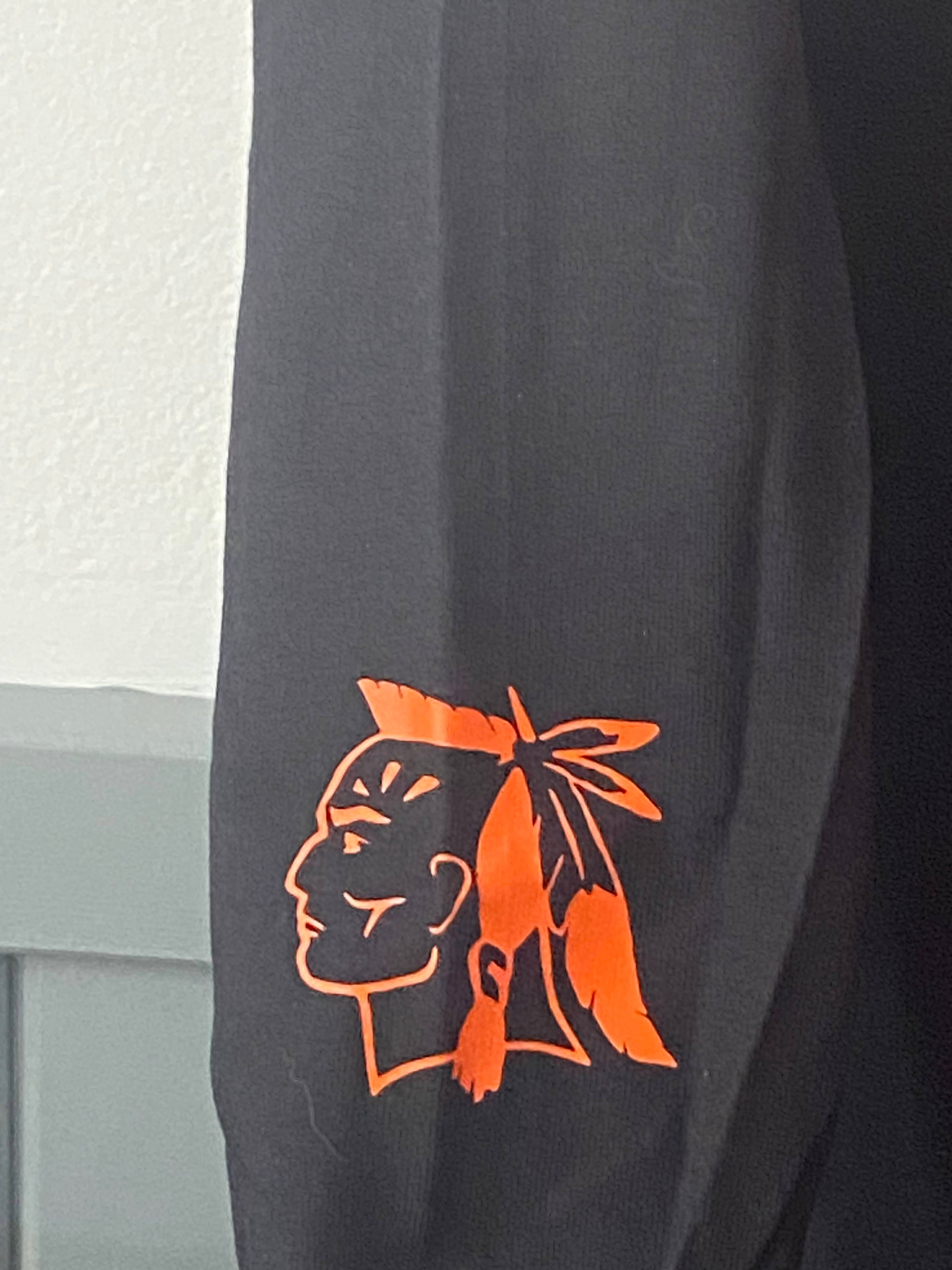 Black cotton blend long sleeve t-shirt featuring our popular Rogers City Hurons design in orange vinyl.
